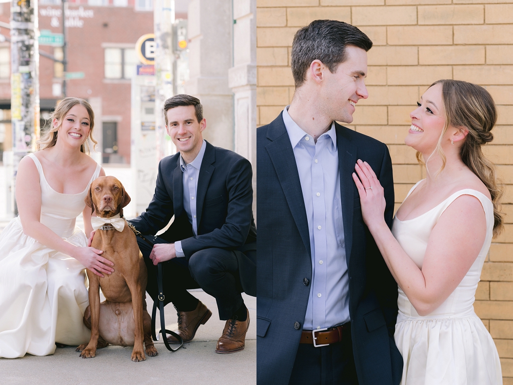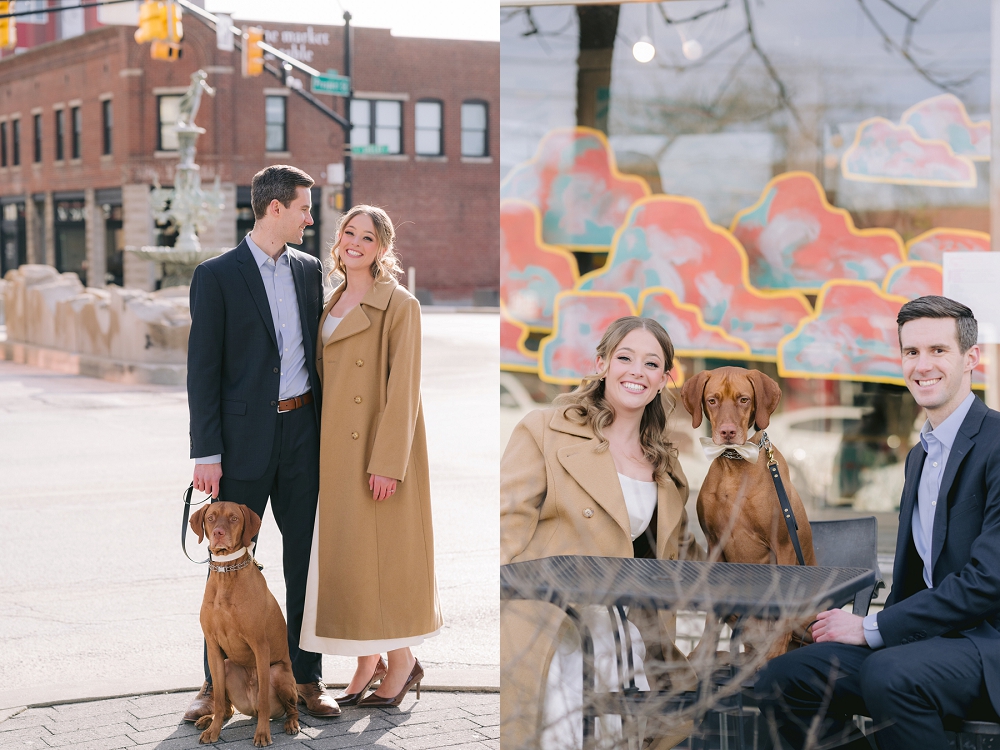 Their beloved Vizsla, Calvin, named after the coffee shop where it all began, also joined in on the photoshoot, bringing an extra layer of warmth and charm to the day. Including pets in engagement sessions is becoming increasingly popular, and Calvin’s presence added a personal touch to the portraits. Though Calvin would not be attending the wedding, his participation in these photos served as a heartfelt tribute to the memories they’ve created together. These pre-wedding portraits truly reflected Ali and Matt’s love story, full of special moments, family ties, and the beloved place where it all began—along with the cherished companion who is part of their journey.